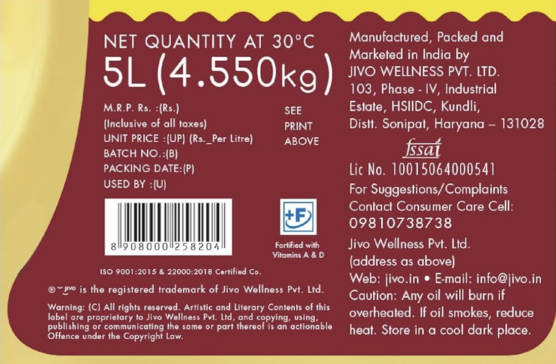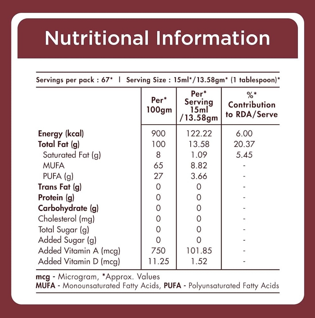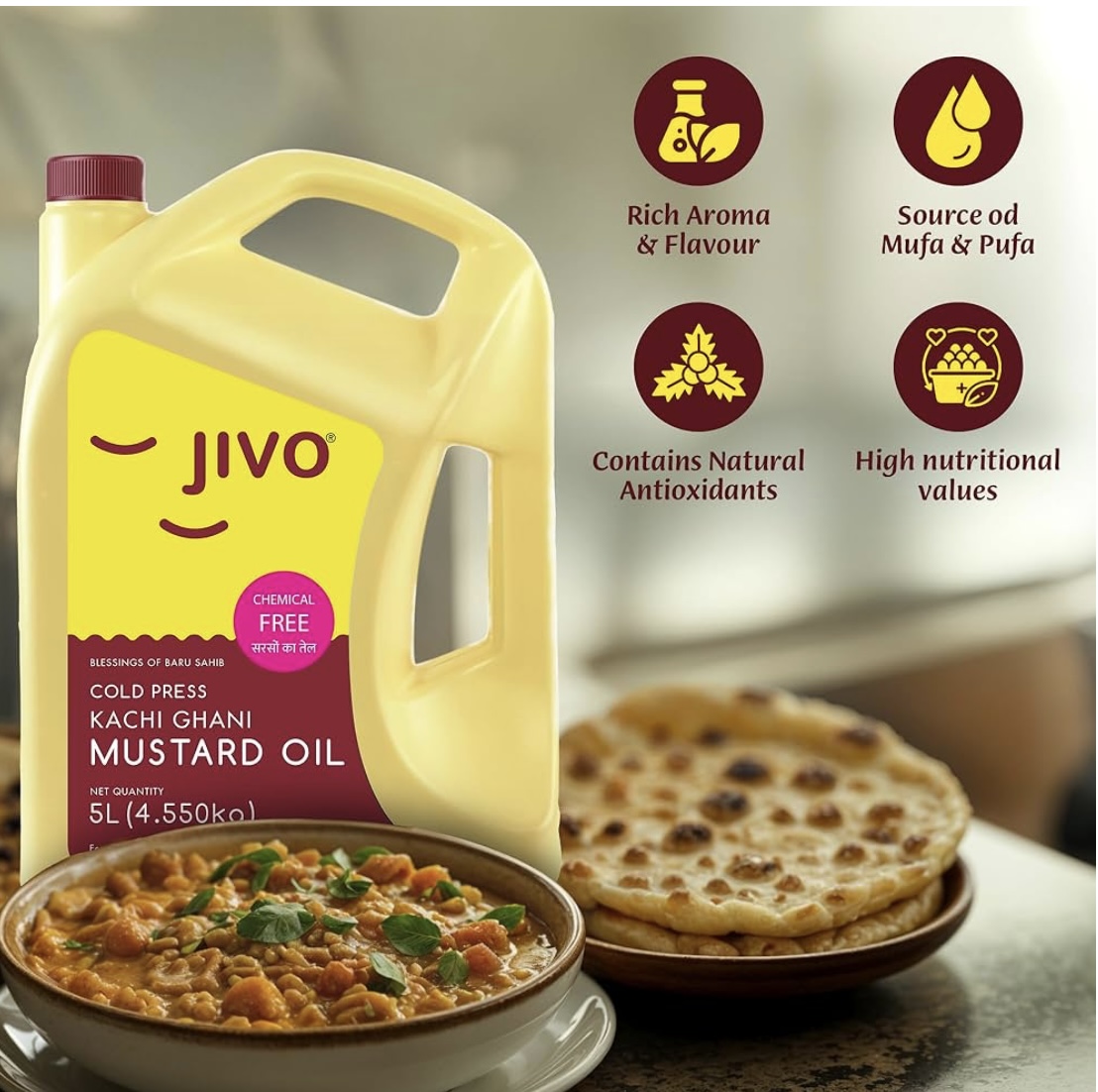 Jivo Cold Pressed Kachi Ghani Mustard Oil brings the age-old purity of mustard oil with a modern touch of health and hygiene. Extracted using the traditional cold-press process, it retains natural aroma, flavor, and nutrients. The oil is completely chemical-free, ensuring safe consumption for your family. Fortified with Vitamin A & D, this mustard oil promotes better vision, immunity, and overall wellness.